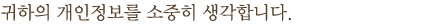 ȸ»ç´Â °³ÀÎÁ¤º¸Ãë±Þ¹æÄ§À» ÅëÇÏ¿© °í°´´Ô²²¼ Á¦°øÇϽô °³ÀÎÁ¤º¸°¡ ¾î¶°ÇÑ ¿ëµµ¿Í ¹æ½ÄÀ¸·Î ÀÌ¿ëµÇ°í ÀÖÀ¸¸ç, °³ÀÎÁ¤º¸º¸È£¸¦ À§ÇØ ¾î¶°ÇÑ Á¶Ä¡°¡ ÃëÇØÁö°í ÀÖ´ÂÁö ¾Ë·Áµå¸³´Ï´Ù.